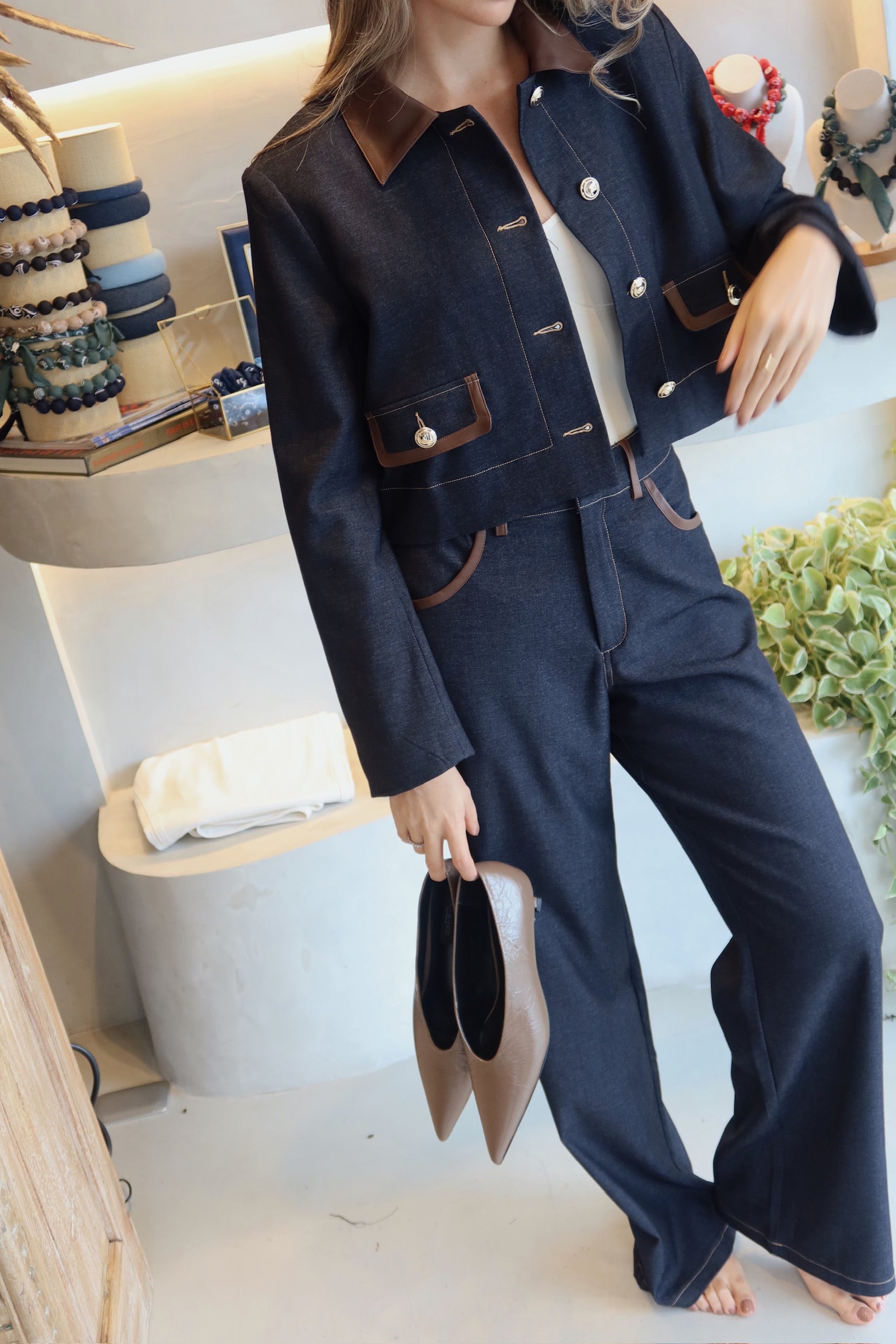The Fran - Denim Leather Set